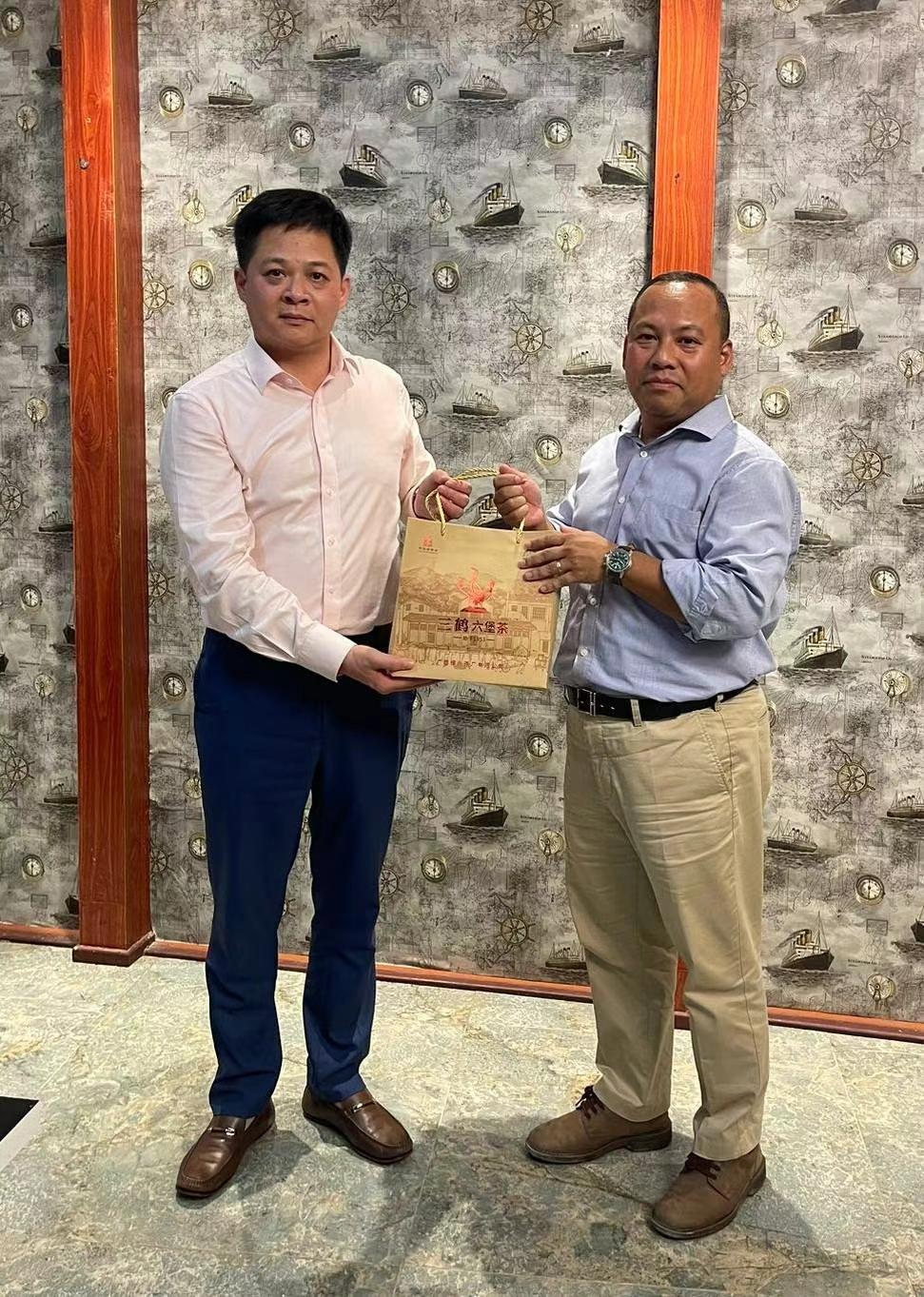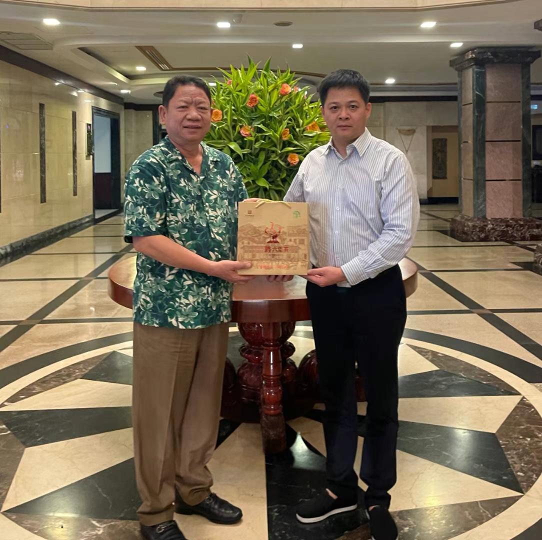 2024年11月17-18日,金山高科集团董事长杨海鑫一行分别拜会柬埔寨西哈努克省副省长Long Dimanche(隆迪蒙)和柬埔寨首都金边市副市长Huot Hay(胡海),就环境保护等事宜展开工作交流,并赠与广西特产“三鹤六堡茶”。