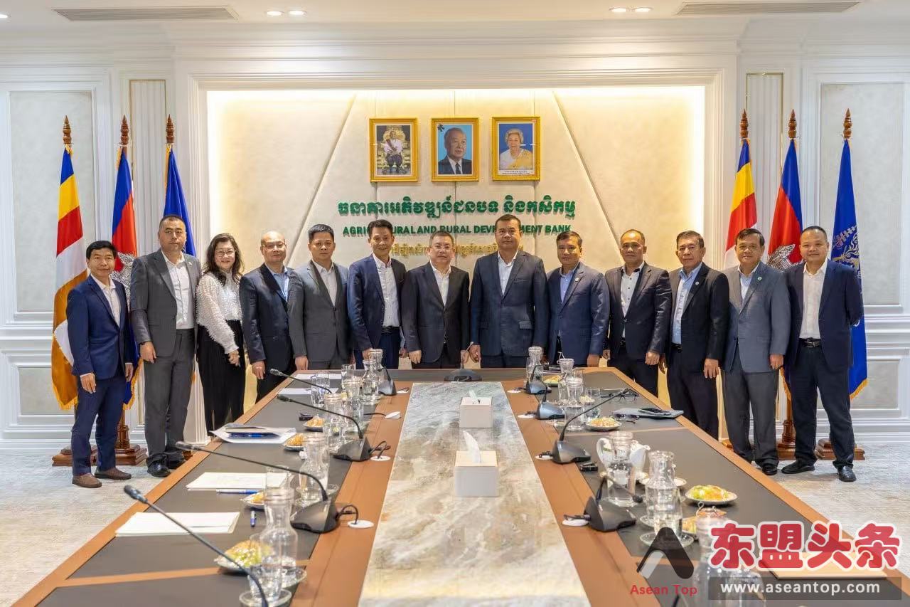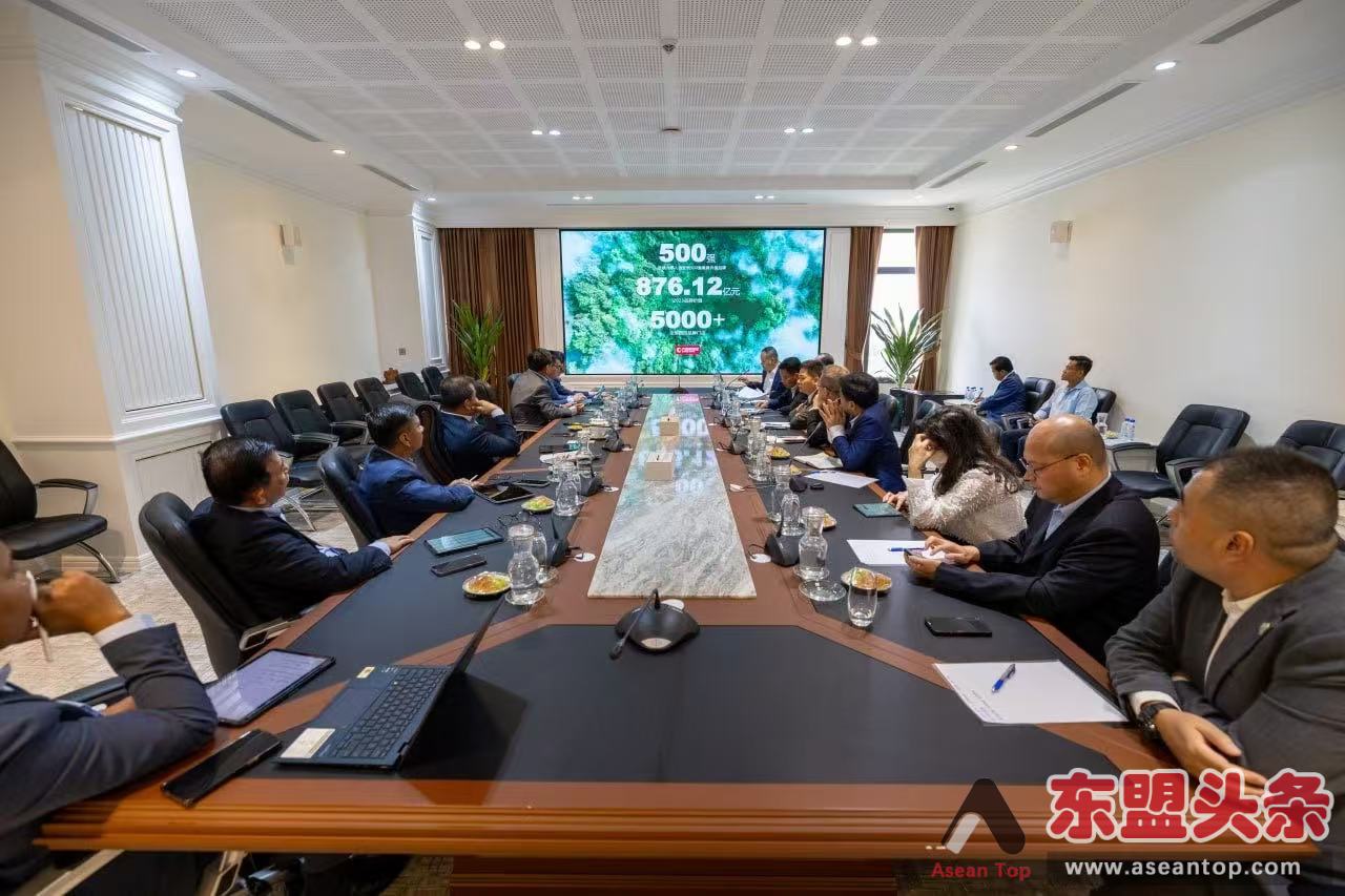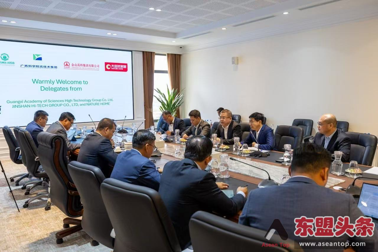 当天,大自然家居集团董事长佘学彬、广西科学院高技术集团总经理周达、金山高科集团董事长杨海鑫等一行在柬埔寨驻南宁总领事唐肃安陪同下,拜会柬埔寨农业农村发展银行并进行工作座谈。